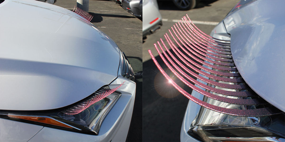 Move over mud flaps and racing stripes and say hello to eyelashes for your car! You are now entering the formerly forbidden "Man-Zone" of car accessories. CarLashes® turn the daily drab of driving into a fun, fashionable, feel-good adventure.