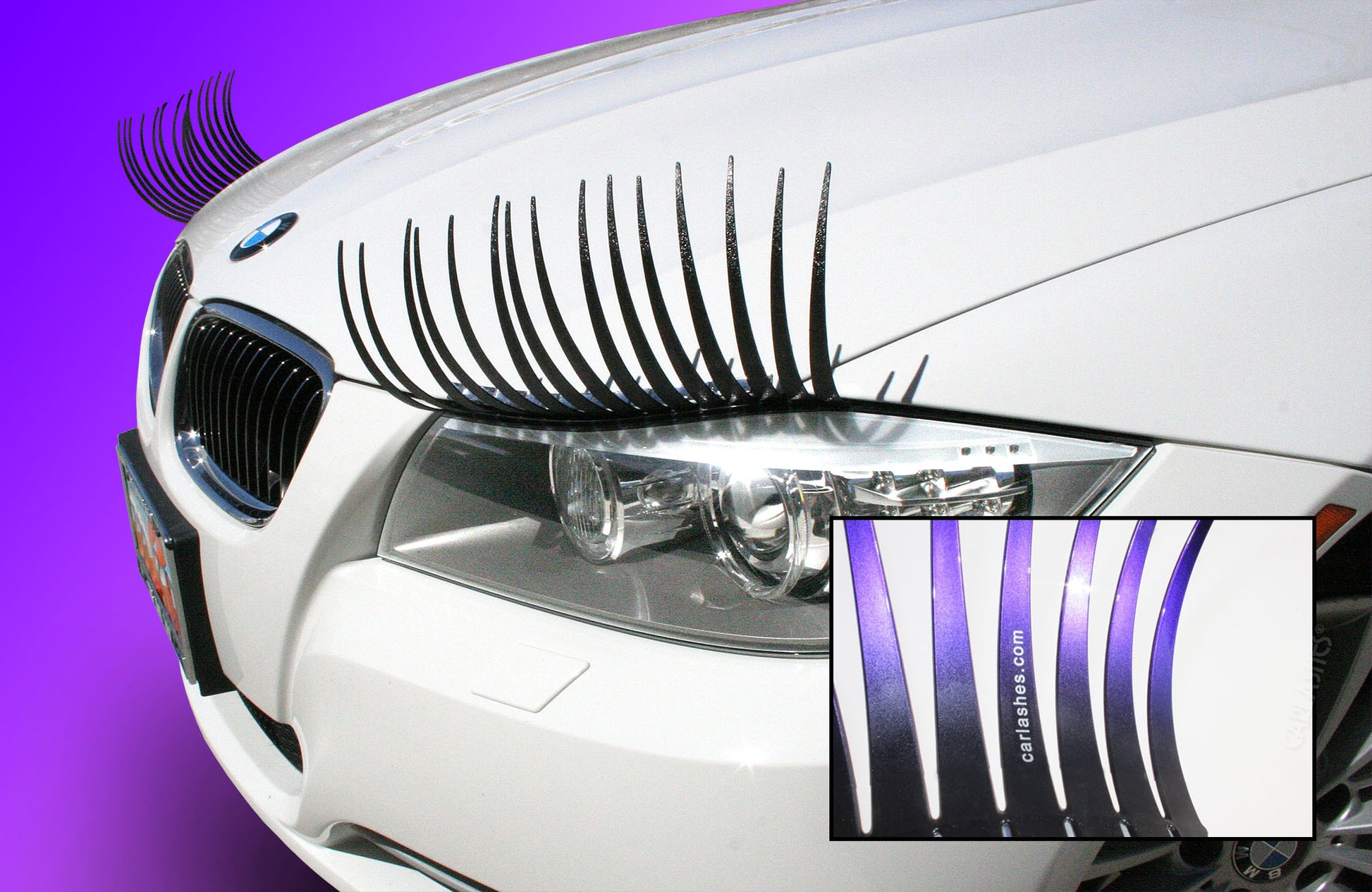 Move over mud flaps and racing stripes and say hello to eyelashes for your car! You are now entering the formerly forbidden "Man-Zone" of car accessories. CarLashes® turn the daily drab of driving into a fun, fashionable, feel-good adventure.