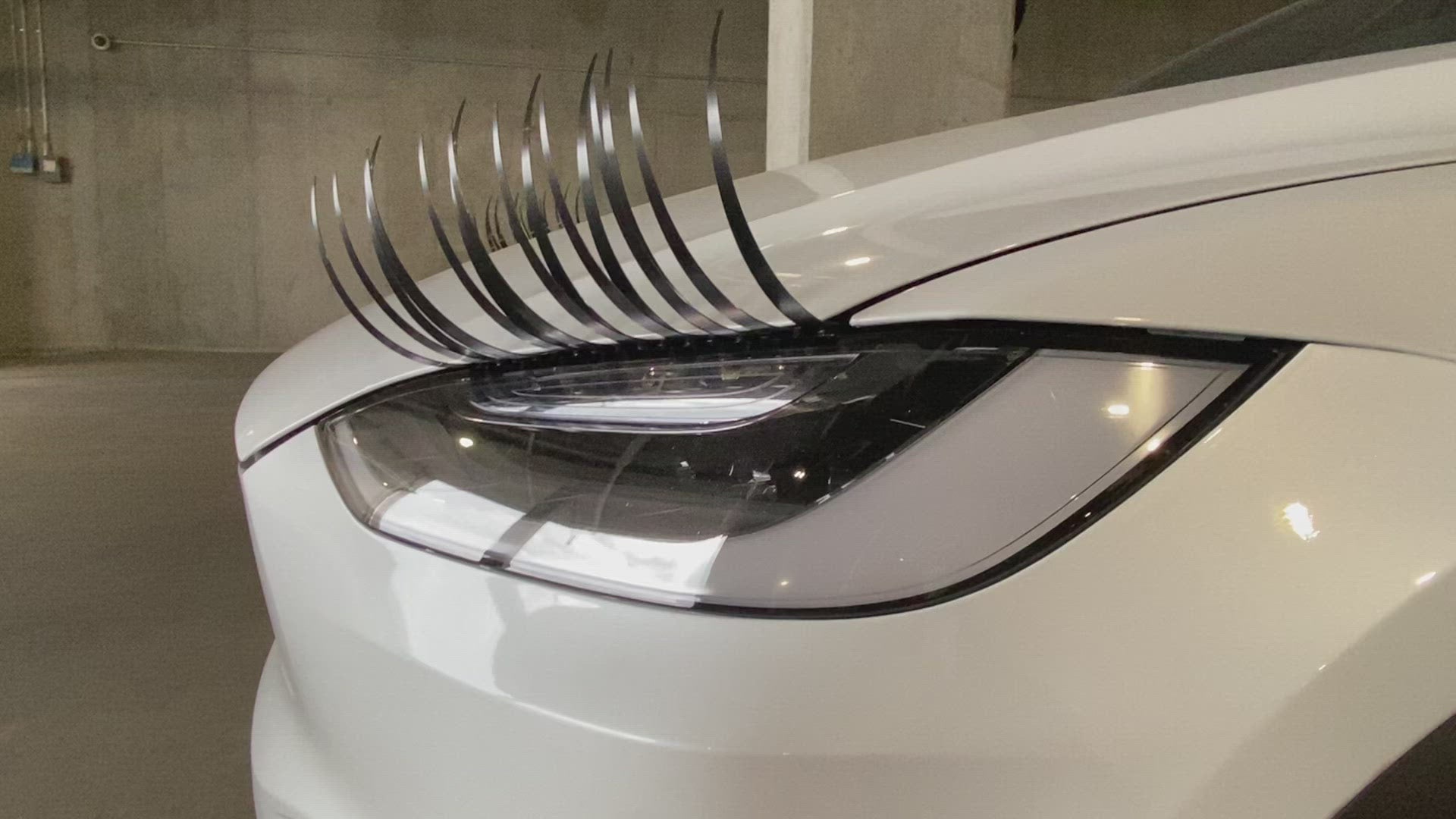 This version of the Classic Black CarLashes® are designed to fit the Tesla Model X (2015-present). The lashes attach easily along the flat ledge on top of each headlight inside the front trunk.