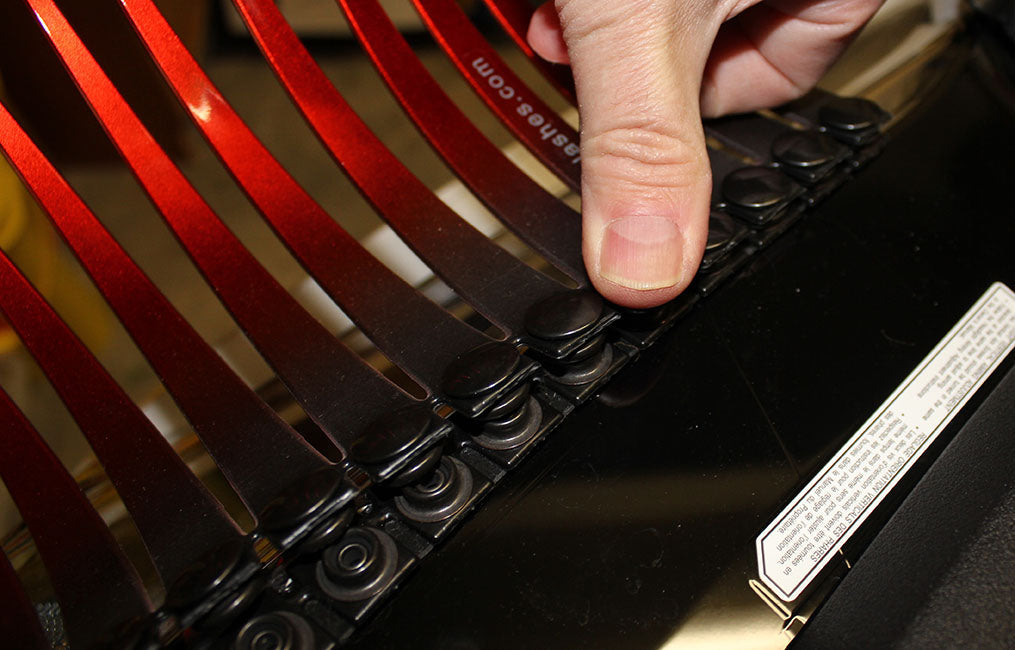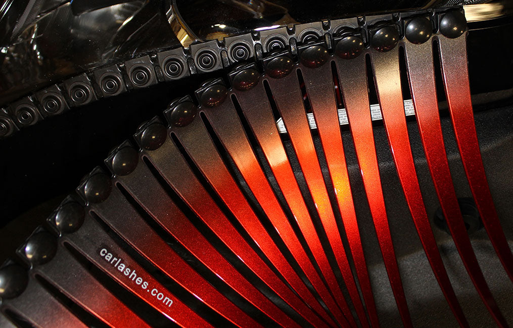 This new kind of CarLashes® uses thirty-two heavy duty all-weather industrial snap fasteners. These fasteners keep your lashes securely attached under all driving conditions.