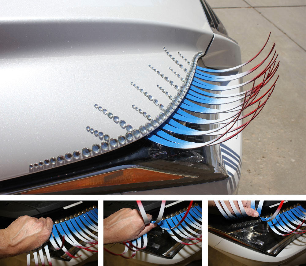 You are now entering the formerly forbidden "Man-Zone" of car accessories. Move over mud flaps and racing stripes and say hello to eyelashes for your car! CarLashes® turn the daily drab of driving into a fun and fashionable, feel-good (even emotional) adventure.